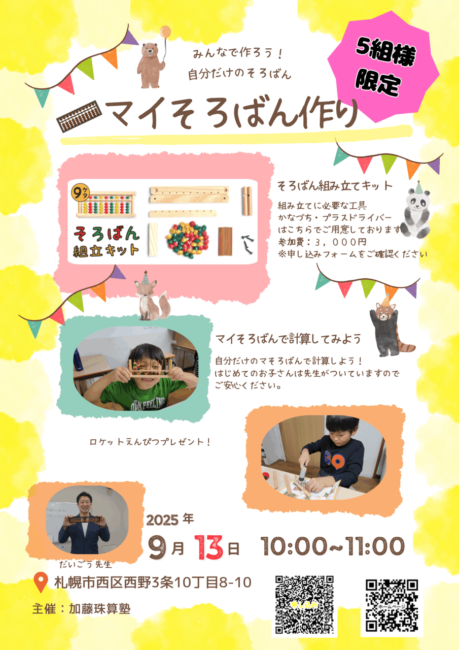 加藤珠算塾公式LINEに登録していただけると教室情報が受け取れます。